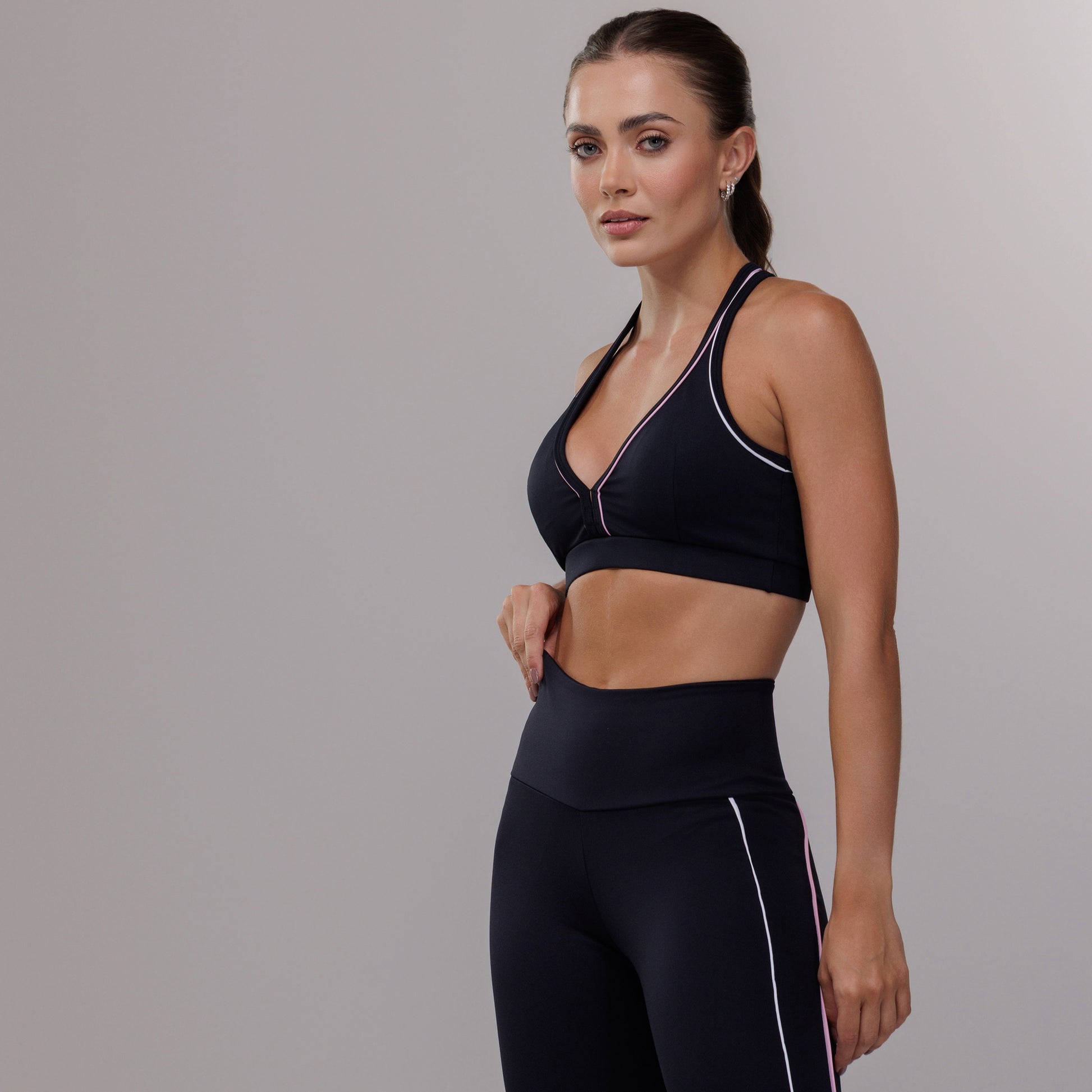 Um modelo clássico: top com decote em V e costas estilo musculoso. Perfeito para atividades de alto impacto, entregando conforto e sustentação. Feito em tecido Aerobic com elástico no cós, forro em tela e bojo removível.